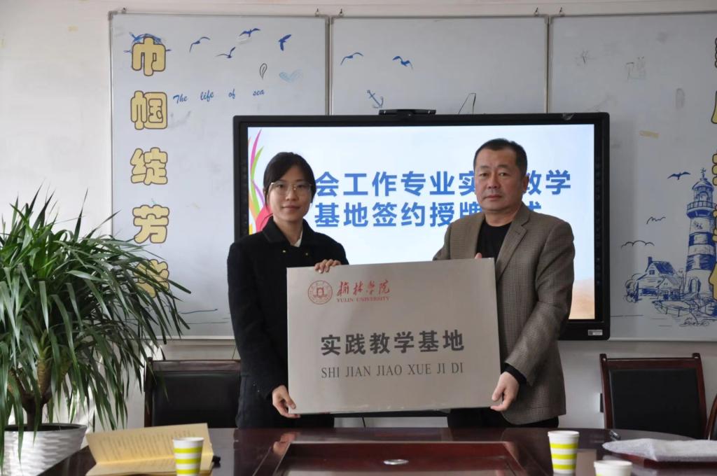 白炜代表政法学院与陕西筑梦公益发展中心与榆阳区星缘心智障碍教育服务中心签订实践教育基地协议并授“实习教育基地”牌。未来实践教育教学基地平台的搭建,为社工专业学生实习实践开展拓展平台,更好地增进校企合作,推进应用型社工人才的培养。
