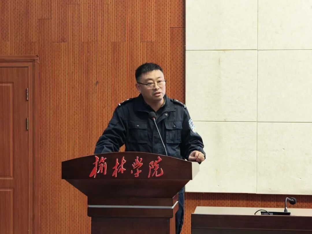 为切实提升在校大学生识骗、防骗、拒骗的能力,有效遏制电信网络诈骗案件在校园的发生,2025年11月20日中午,法学与历史文化学院联合建筑工程学院在逸夫楼一楼报告厅举办防范电信诈骗专题讲座。本次讲座特别邀请榆林市公安局榆阳分局崇文路派出所社区警务队中队长杜俟雷警官主讲,建筑工程学院党总支书记薛国栋、副书记马腾、辅导员崔新、法学与历史文化学院党总支副书记刘浪、各班班长以及全体舍长参加。