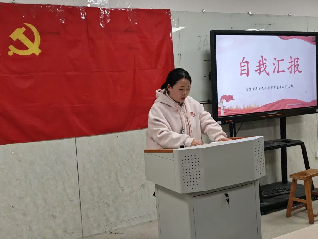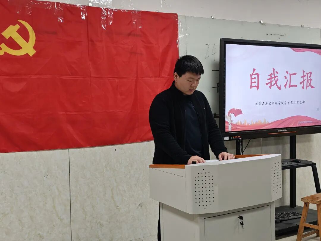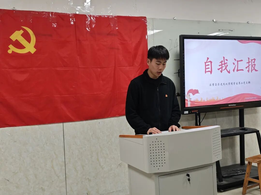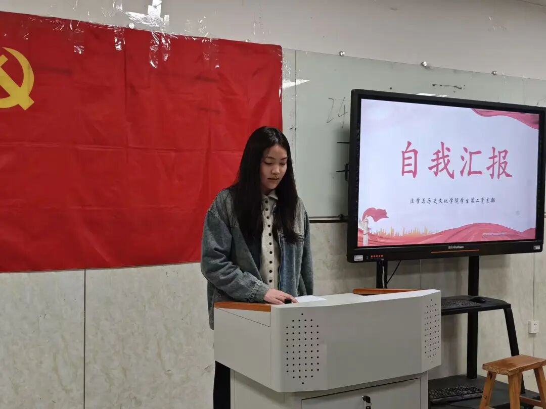 为了进一步加强党员队伍建设,增强党员队伍生机活力,2026年3月30日,法学与历史文化学院学生第二党支部在3407教室召开预备党员转正大会,讨论米婉婷、周澍、张香香、刘彦妤、展搏5名预备党员按期转为中共正式党员相关事宜。会议由学生第二党支部党员贺晓琴主持。