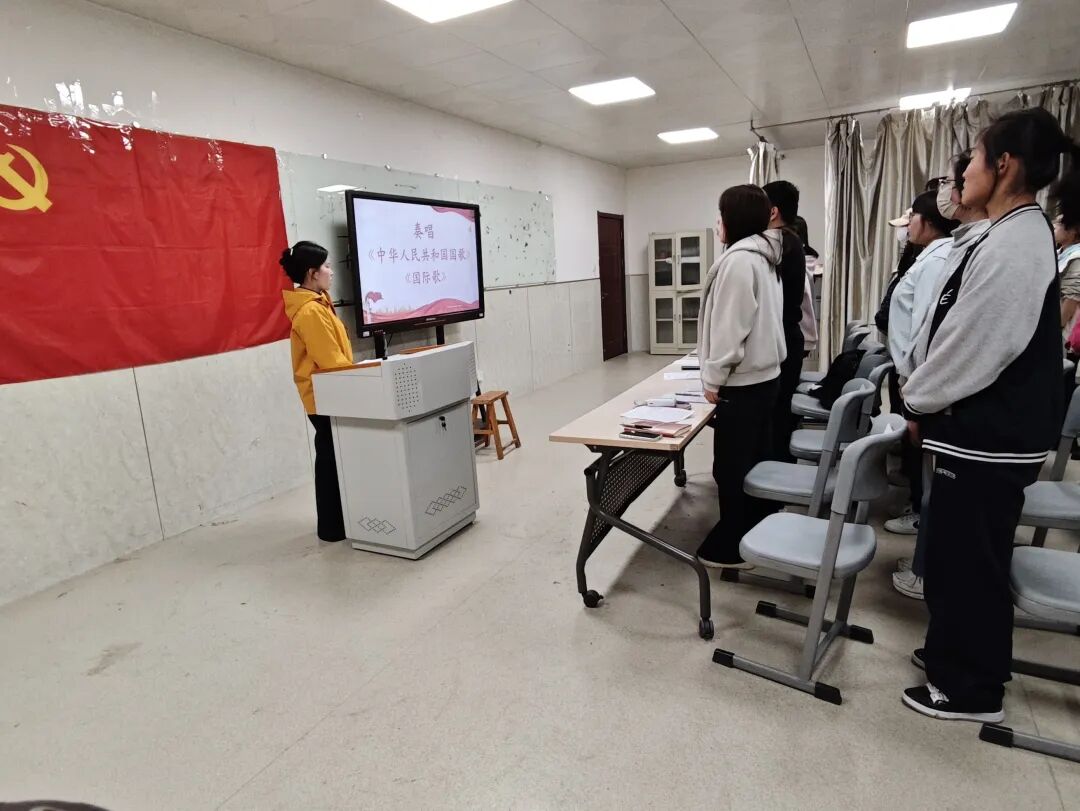大会第一项,全体起立,奏唱《中华人民共和国国歌》《国际歌》。在庄重肃穆的旋律中,本次转正大会正式拉开帷幕。