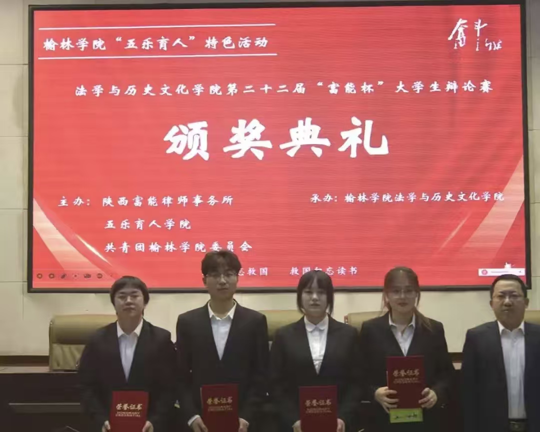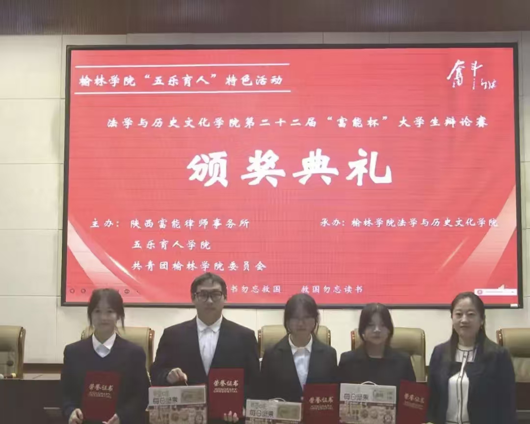 高谈辩飞兔,摛藻握灵蛇。2025年10月24日晚,榆林学院法学与历史文化学院第二十二届“富能杯”大学生辩论赛决赛在逸夫楼一楼报告厅举行。决赛由24历史2队、24法学2队、25法学1队、24级联队四支队伍进行最终比拼,辩手们汇聚赛场,用清晰的逻辑和犀利的语言展开思想的交锋。